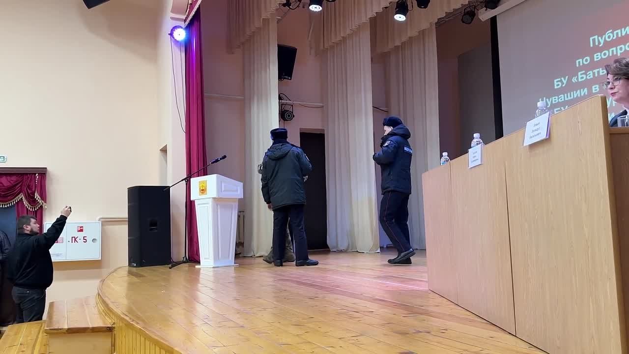 Отвратительный инцидент произошёл в Чувашии во время публичных слушаний о присоединении Яльчикской больницы к Батыревской. Глава Яльчикского округа не захотел, чтобы участник боевых действий говорил с народом со сцены, и вызвал полицейский конвой.
