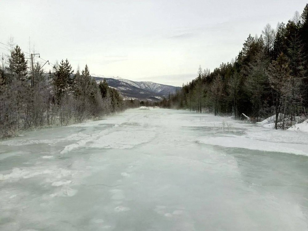 Дорогу к поселку в Бурятии подтопило наледными водами