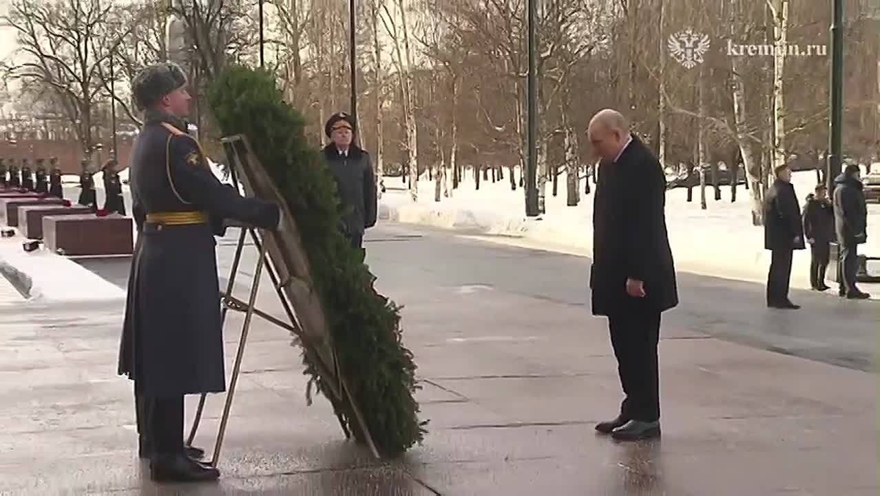 Военнослужащие Президентского полка установили у Могилы Неизвестного Солдата у Кремлевской стены венок с лентой цветов российского триколора. Президент почтил память погибших воинов минутой молчания. Церемония завершилась торжественным маршем роты Почетного караула.