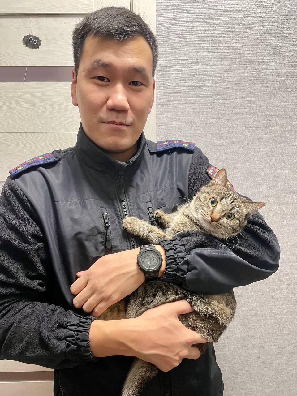 История спасения маленького питомца началась несколько месяцев назад, когда патрульный экипаж ДПС обнаружил замерзшего котенка на дороге возле села Никольск. Мороз был сильный, и котенок мог погибнуть. Полицейские решили спасти малыша, забрали его в машину и отвезли к ветеринарам.