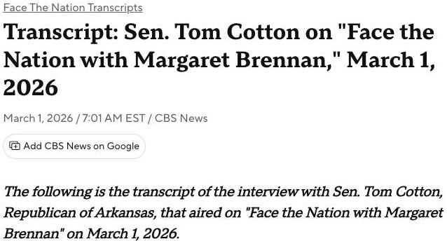 — цитирует CBS News главу сенатского комитета по разведке Тома Коттона.