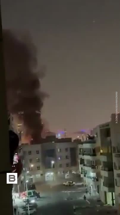 В Дубае горит консульство США, сообщает Sabereen news. В соцсетях публикуют кадры, предположительно, с места ЧП. Утверждается, что причиной пожара стала атака иранского беспилотника.