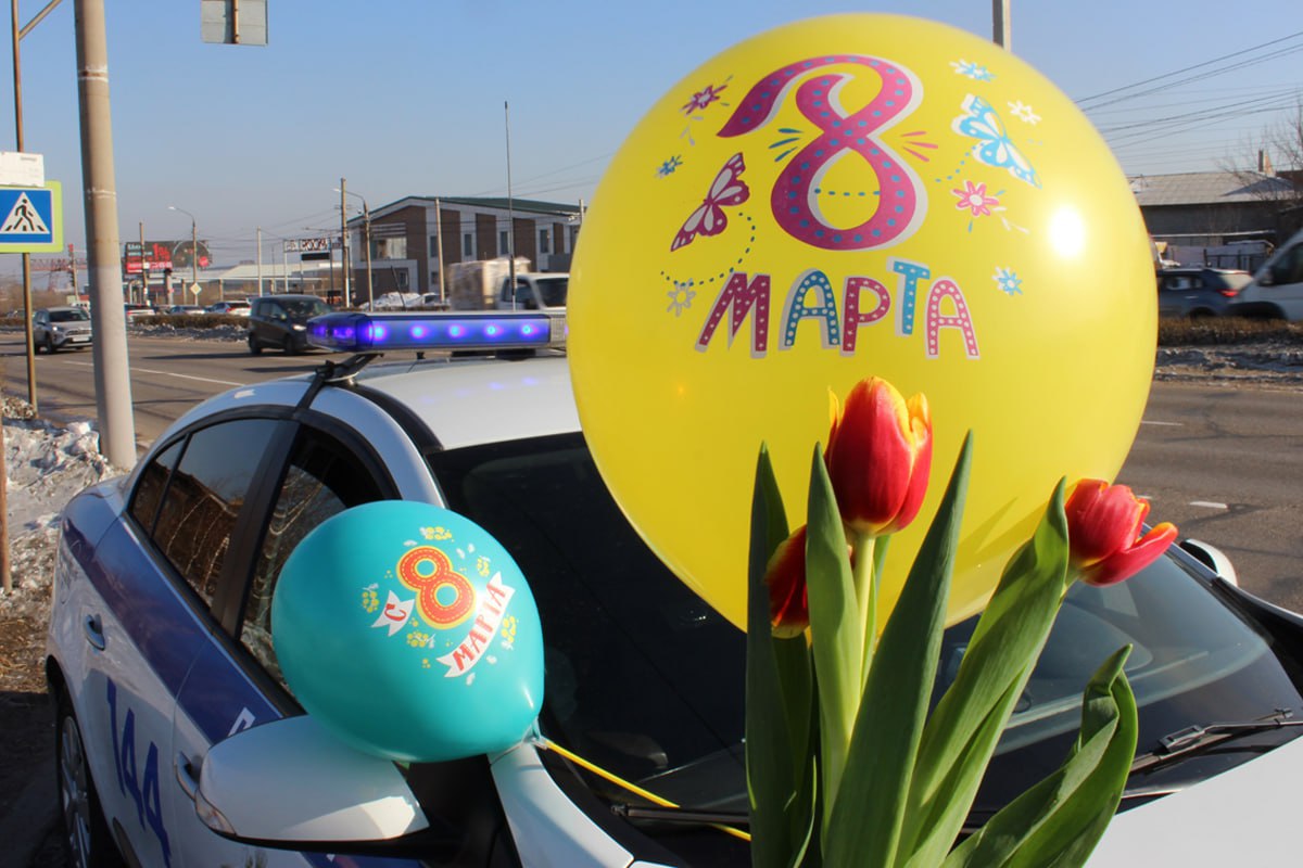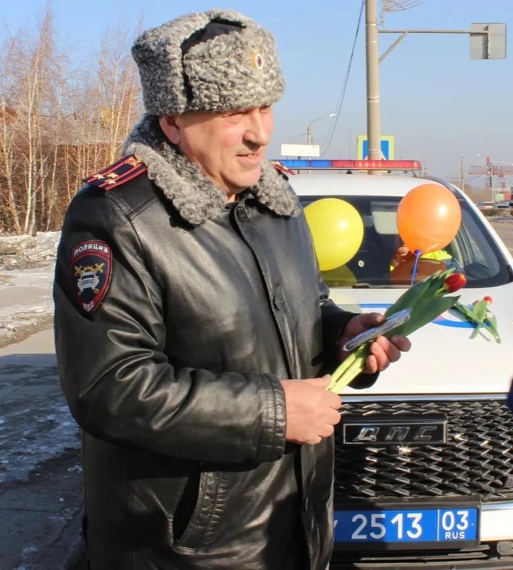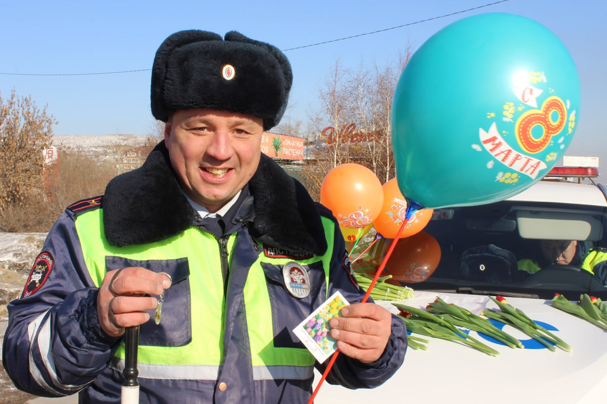 В Улан-Удэ полковник полиции Леонид Минаев вышел на дорогу, чтобы лично поздравить женщин с 8 Марта.