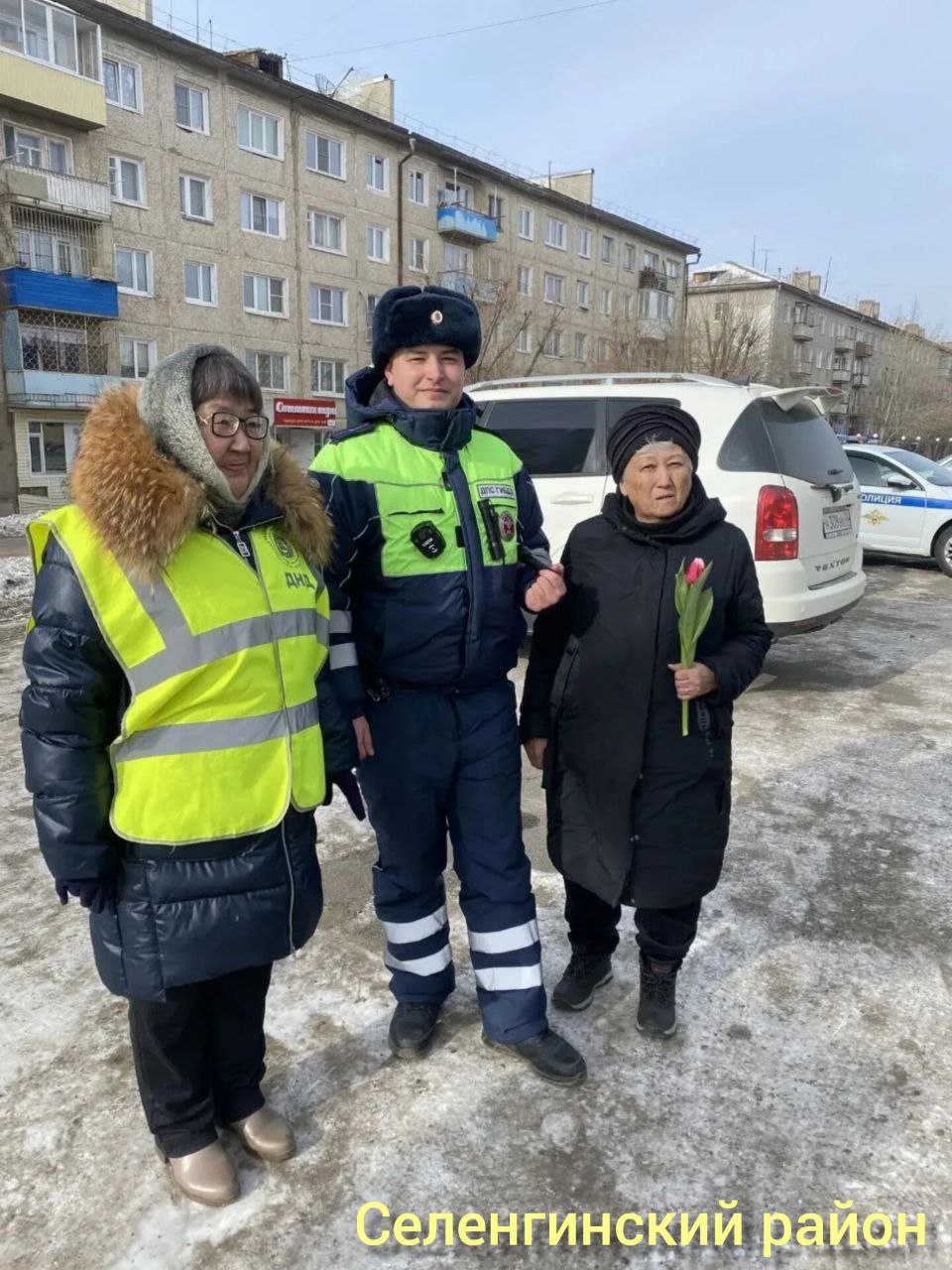 Сотрудники полиции МО МВД России «Хоринский» совместно с представителем ДНД и членом Общественного совета Цыденом Санжиевым также присоединились к акции. Они дарили женщинам-водителям цветы и теплые слова, создавая праздничное настроение на дорогах района.
