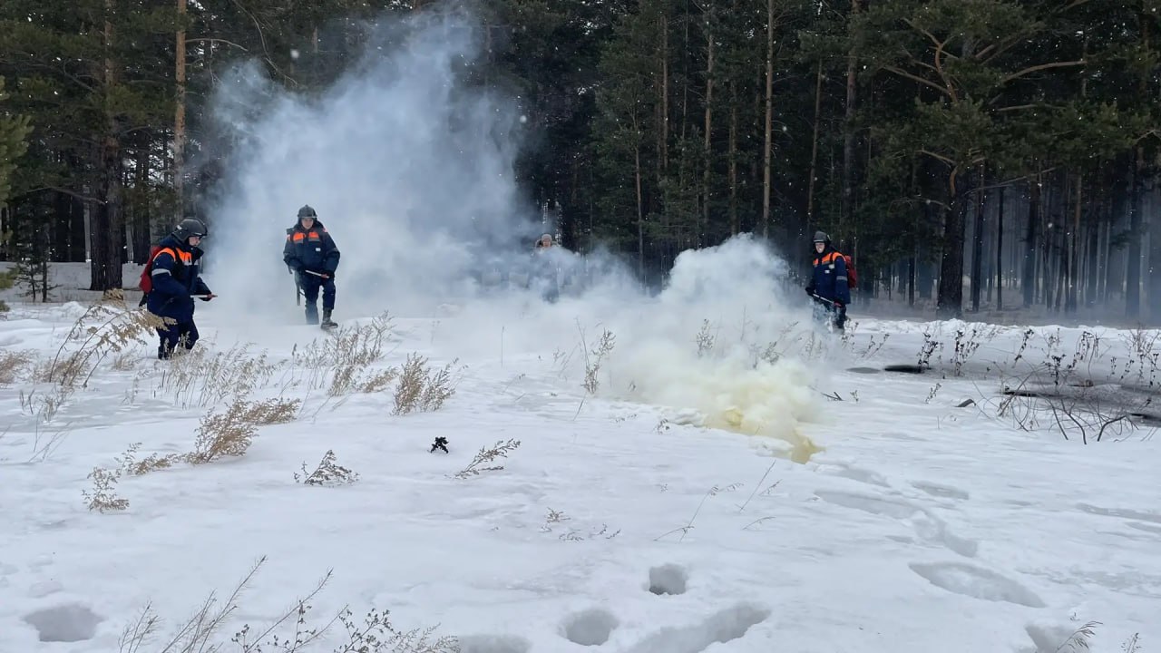 По сценарию «загорелся» лес рядом с жилыми домами в микрорайоне Верхняя Берёзовка. Площадь возгорания «составила» 2 га, огонь якобы начал переходить на дома.