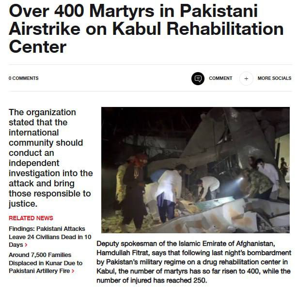 По данным TOLOnews, около 400 человек погибли, более 250 ранены. Удары пришлись в том числе по гражданским объектам.