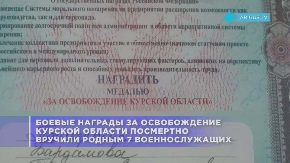 Медали за освобождение Курской области вручили сегодня родным погибших участников спецоперации. Церемония прошла в Народном Хурале.Канал Ариг Ус в MAX