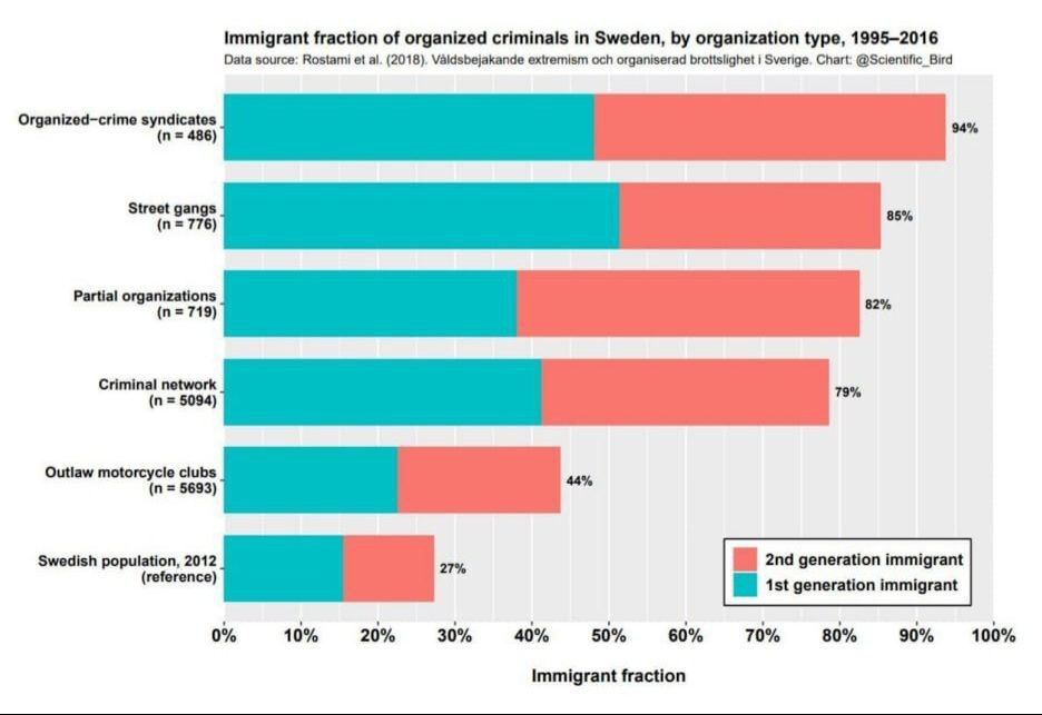 Такие данные озвучивает правительство страны после проведения исследования.Мигранты и их дети составляют большинство в местных организованных преступных группах (ОПГ). И сами ОПГ в Швеции в основной массе этнические — доля приезжих в них достигает...