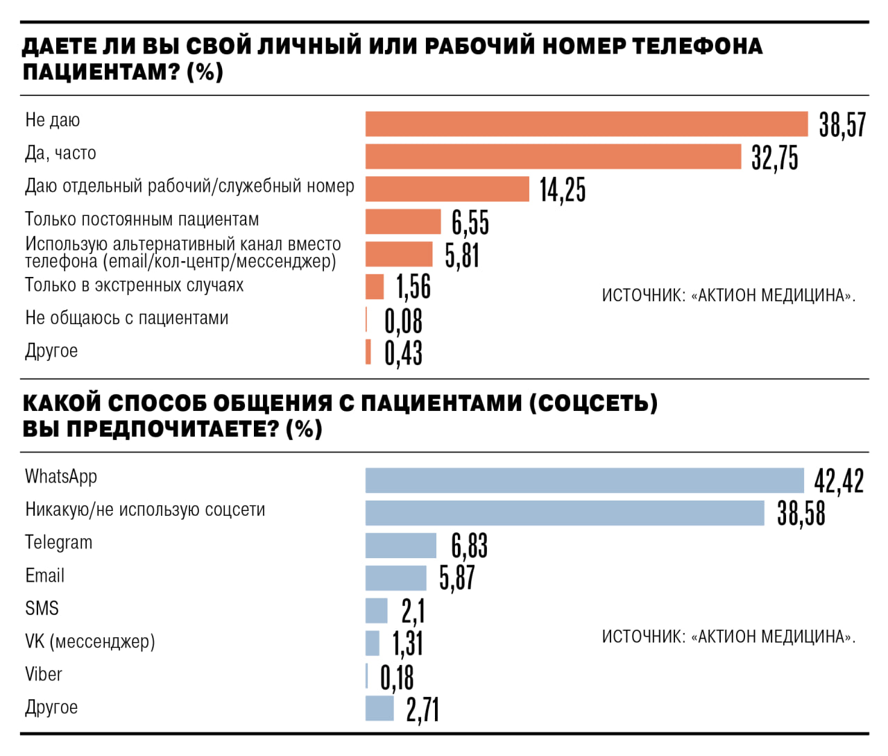 Каждый третий врач в России готов дать пациенту личный номер телефона или контакт в мессенджере для консультации — таковы результаты опроса, проведенного сервисом «Актион медицина». Почти столько же медиков категорически против подобной практики.