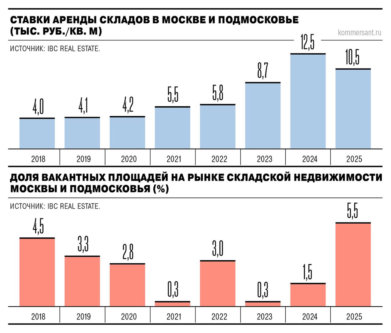 Ставки аренды на складском рынке Москвы и Подмосковья после резкого роста начинают снижение: к концу года они сократятся на 16%, в 2026 году — еще на 5%.