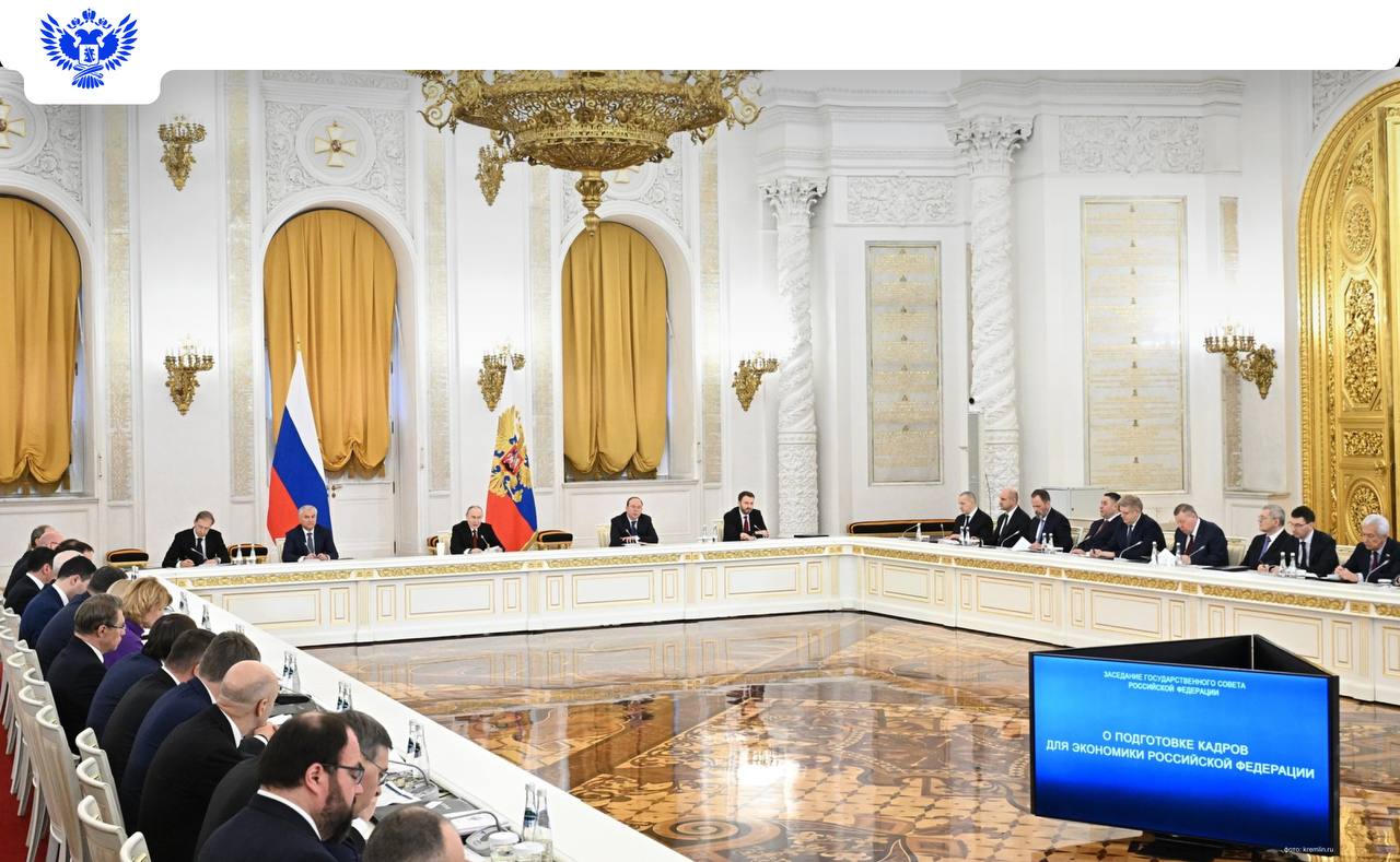 Президент России Владимир Путин провёл заседание Государственного Совета, посвящённое вопросам подготовки кадров для экономики Российской Федерации. Участие в мероприятии приняли заместитель Председателя Правительства России Дмитрий Чернышенко и министр просвещения РФ Сергей Кравцов.