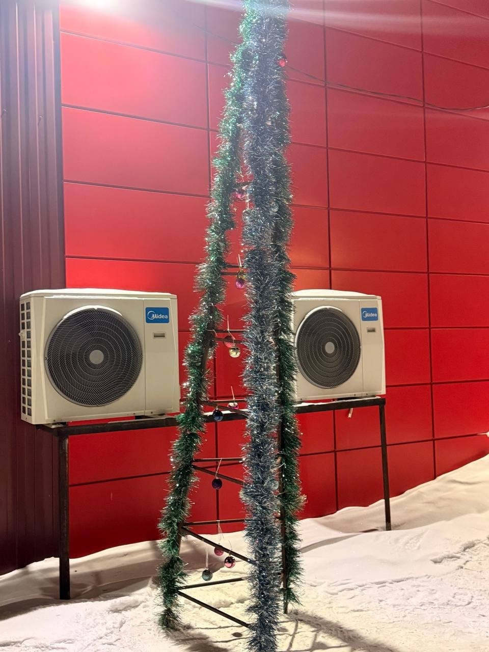Главный символ предстоящего праздника представляет собой треугольную конструкцию с шариками, обмотанную мишурой. То ли это ёлка в стиле минимализм, то ли креатив такой, но люди посыл не поняли