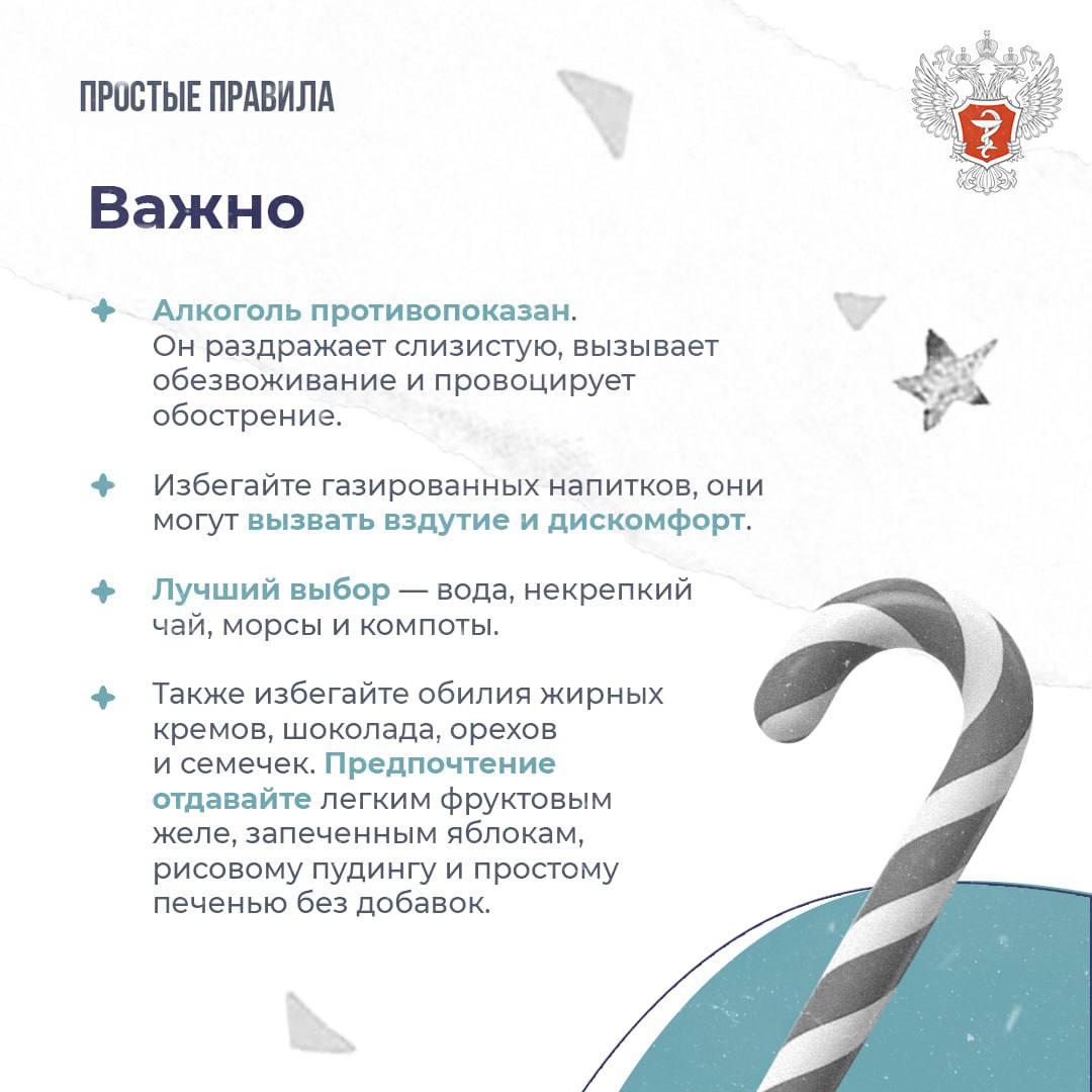 подготовка к празднику, недосып, нарушение графика приема лекарств снижают адаптационные способности ЖКТ.