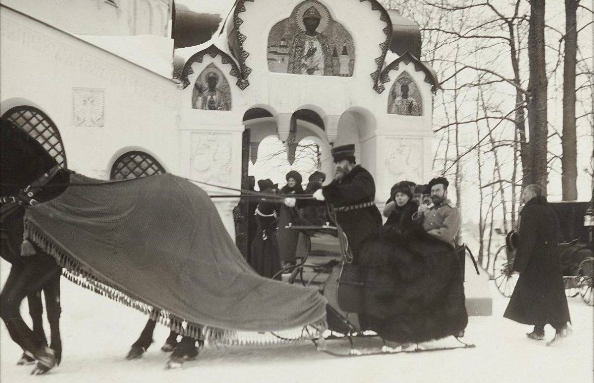Николай ІІ с Ольгой Александровной на санях Феодоровского собора
