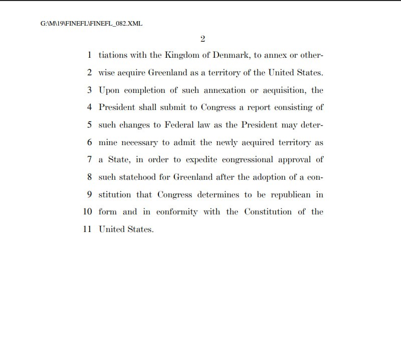 Законопроект позволяет США присоединить или купить Гренландию и в перспективе сделать её новым штатом. Он объясняет это интересами национальной безопасности, конкуренцией с Китаем и Россией в Арктике и необходимостью усилить позиции США в регионе.