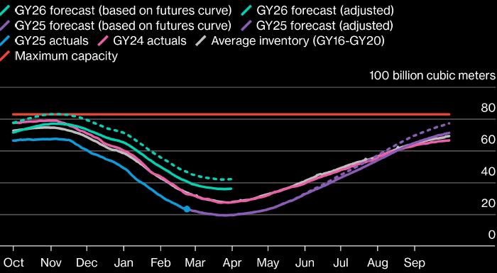 Прошлый сезон отбора газа из европейских подземных хранилищ завершился 28 марта 2025 года, тогда в них оставалось 33,57% запасов.