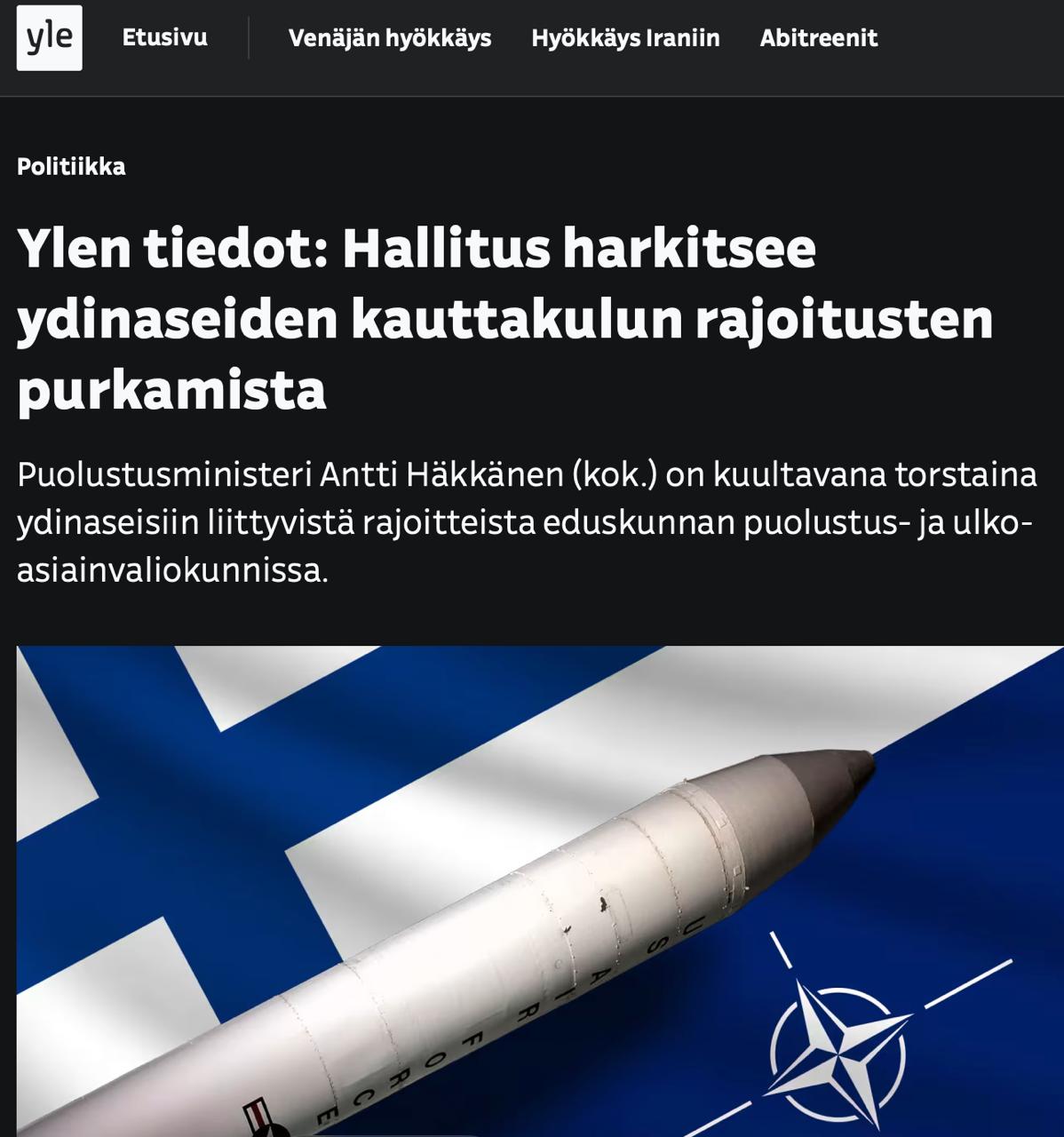 Yle отмечает, что обсуждение темы транзита ядерного оружия проходит в контексте членства Финляндии в НАТО и на фоне геополитической неопределенности в регионе.