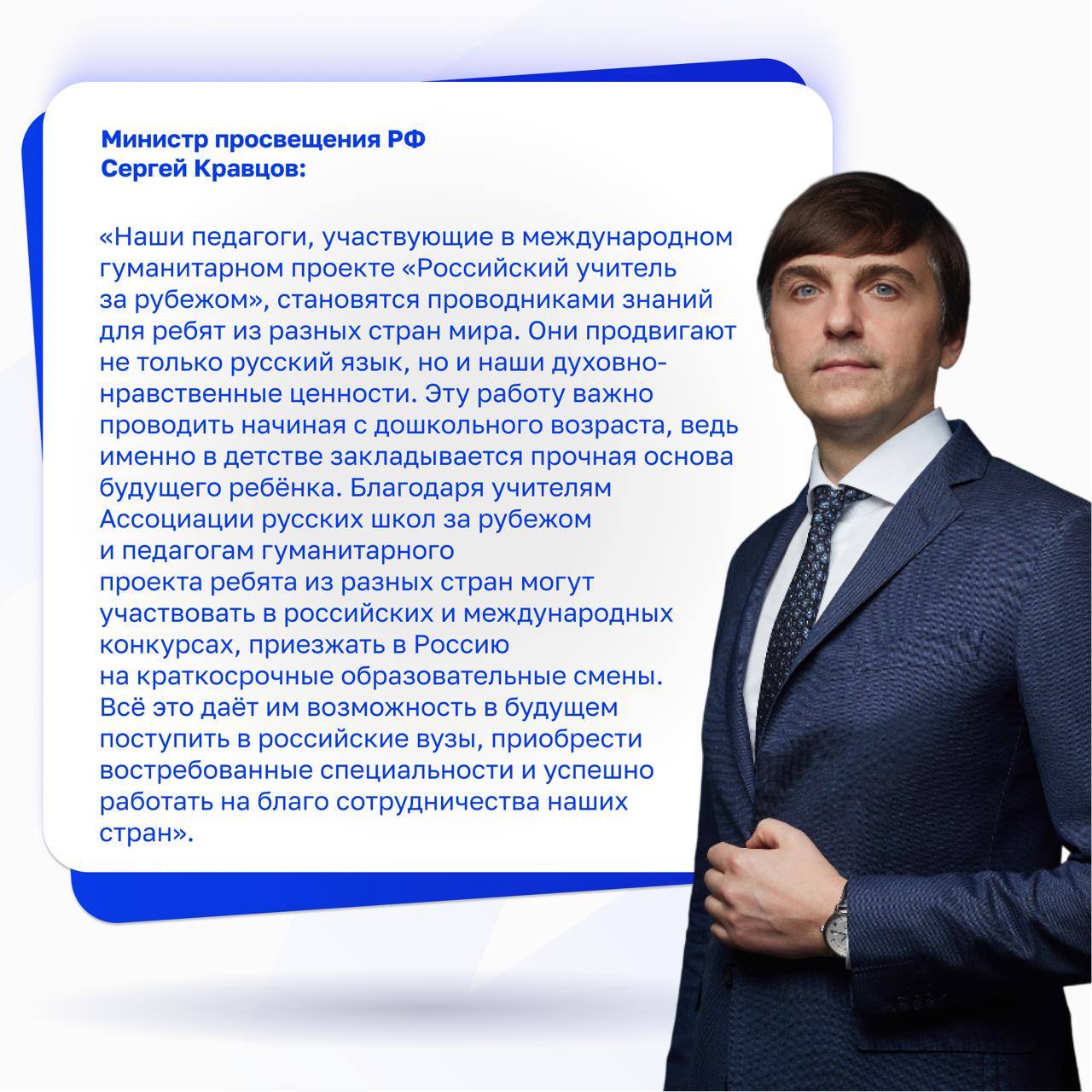 Директор Центра международного сотрудничества Минпросвещения России Сергей Малышев отметил, что педагоги дошкольного образования в русских школах за рубежом создают основу, в том числе и языковую, для дальнейшего, более углублённого изучения остальных предметов.