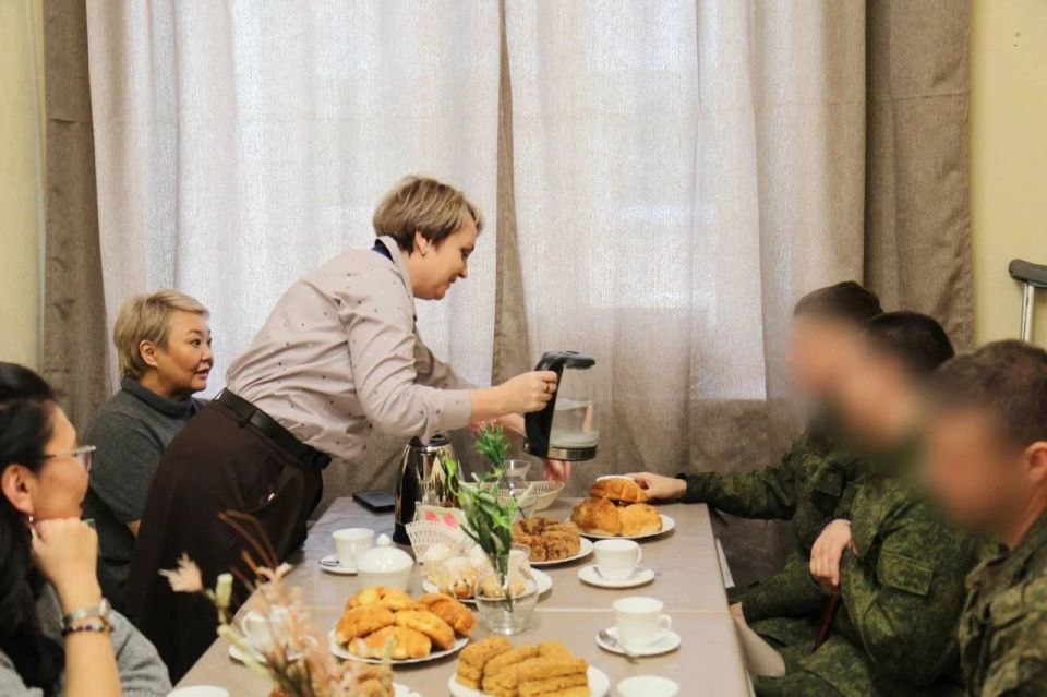 В рамках акции женщины-депутаты Народного Хурала Бурятии побывали в санитарном батальоне войсковой части 46108 г. Улан-Удэ, где поблагодарили раненных бойцов за мужество и преданность Родине, угостили их домашней выпечкой, свежими фруктами, организовали праздничное чаепитие, создав атмосферу тепла и уюта.