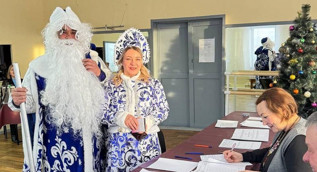 Дед Мороз и Снегурочка пришли проголосовать на избирательный участок в Бурятии
