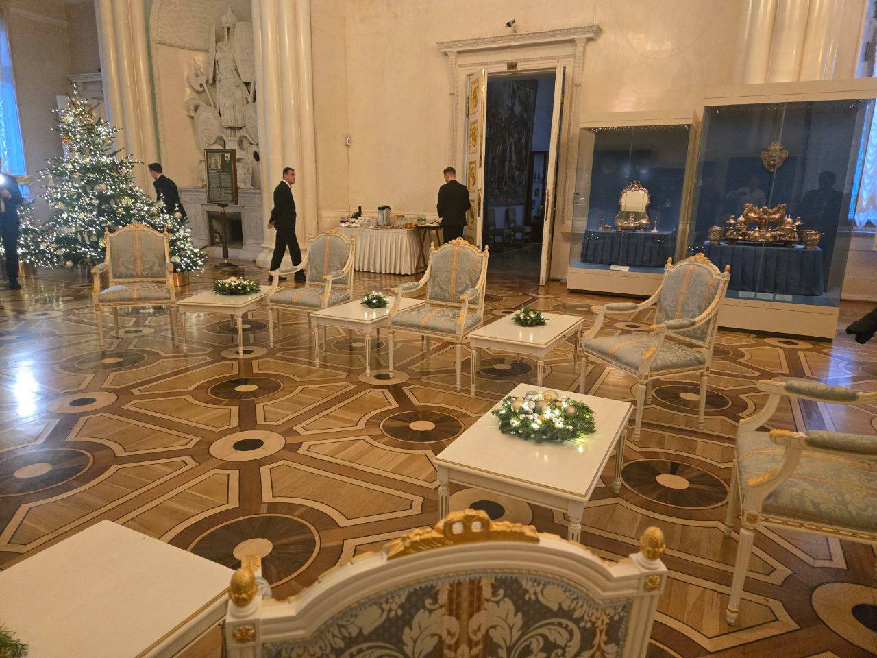 Сегодня неформальный саммит СНГ развернется прямо тут, в залах Эрмитажа. Владимир Путин, по информации специального корреспондента «Ъ» Андрея Колесникова, проведет несколько экскурсий для коллег.