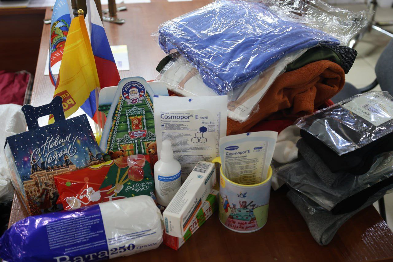 Для поддержания нашего военнослужащего, поднятия духа бойца собрали всем партийным офисом медикаменты, теплую одежду, продукты питания, сладости, сгущенку, консервы рыбные и мясные, печенье, чай.