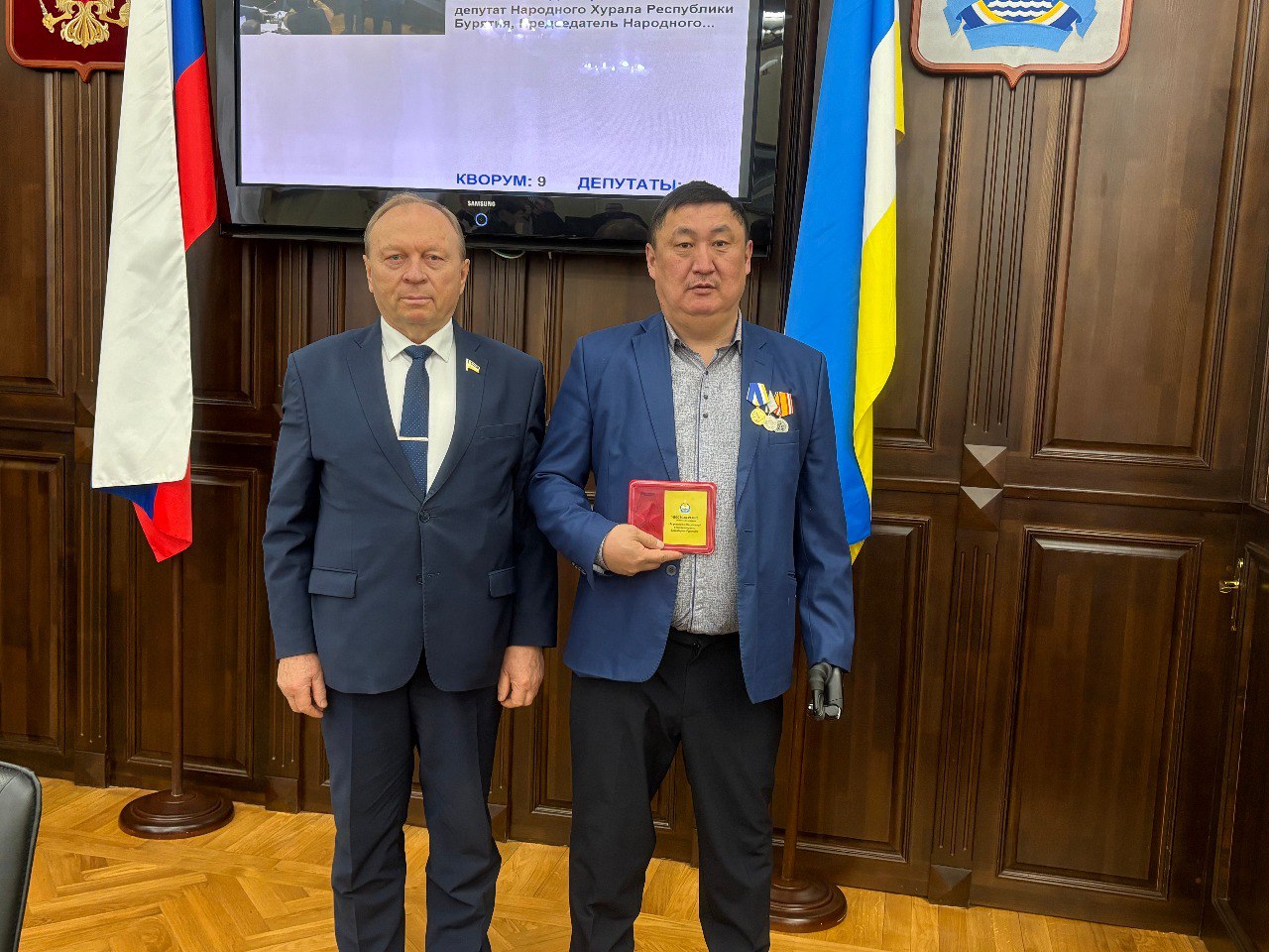 Указом Главы Республики Бурятия Алексея Цыденова депутат Народного Хурала шестого созыва Геннадий Аюшеев награжден памятной медалью «За участие в специальной военной операции. Благодарная Бурятия».