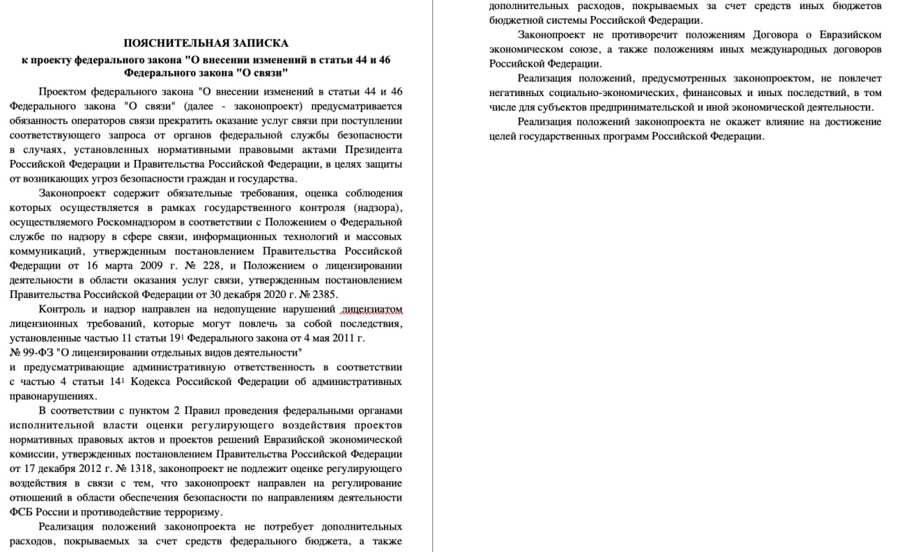 Законопроект вводит два ключевых положения. Во-первых, операторы связи будут обязаны приостанавливать оказание любых услуг связи по требованию ФСБ с целью «защиты граждан и государства от угроз безопасности». Конкретные основания для таких отключений должны быть установлены отдельными указами президента или постановлениями правительства.