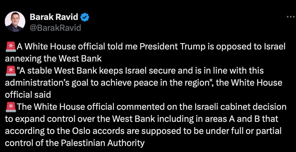 Трамп выступил против аннексии Израилем Западного берега реки Иордан.