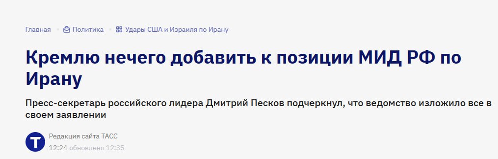 С утра писали о том, что многое (в отношении нашей официальной позиции по Ирану) будет понятно из комментариев Дмитрия Пескова.
