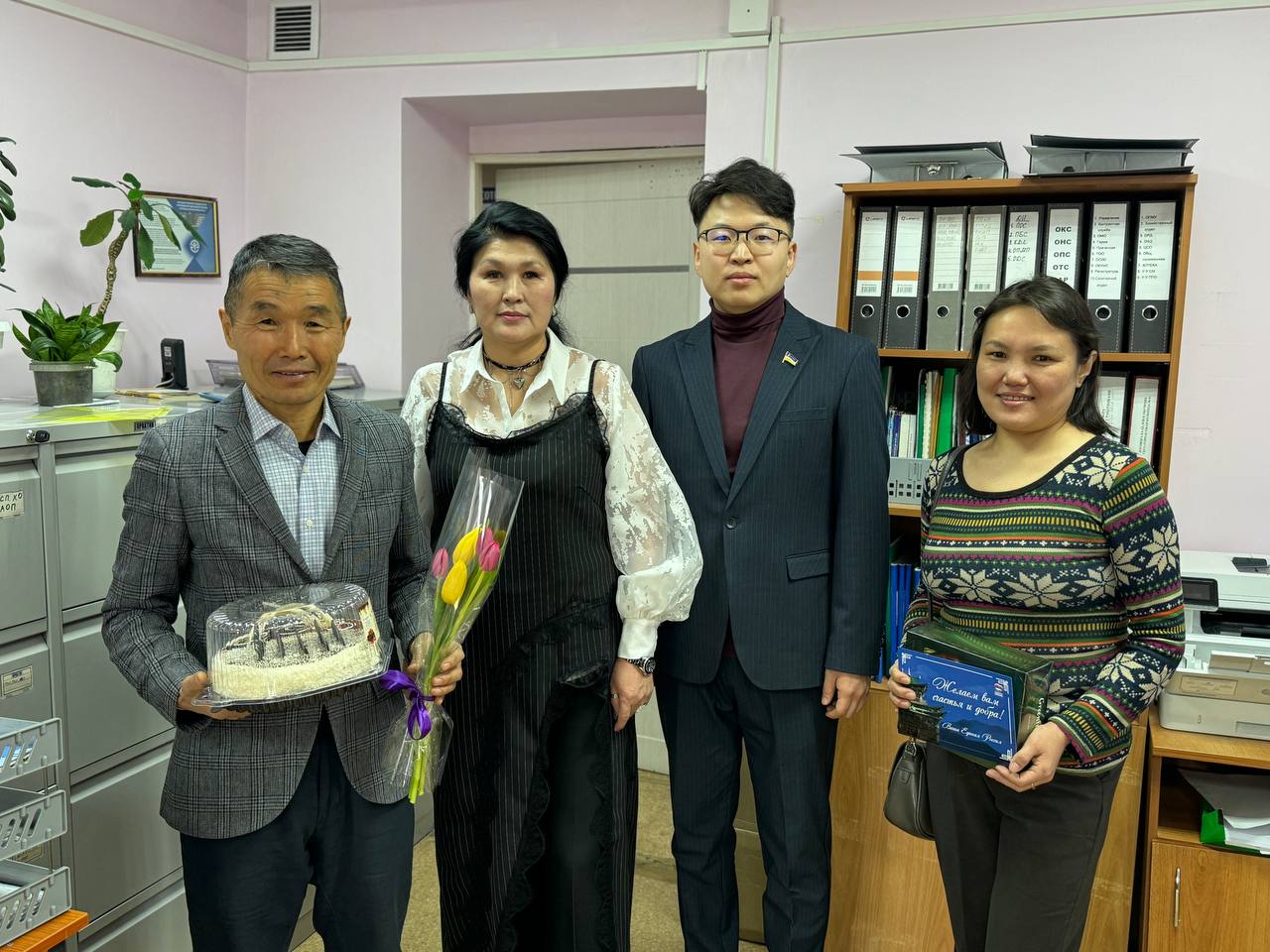 Депутаты Народного Хурала Замбал Санжиев и Михаил Гергенов вместе с Молодой Гвардией поздравили прекрасных сотрудниц социально значимых учреждений 25 округа с наступающим 8 Марта. Подарки вручили прямо во время рабочего дня – получилось неожиданно и очень душевно.
