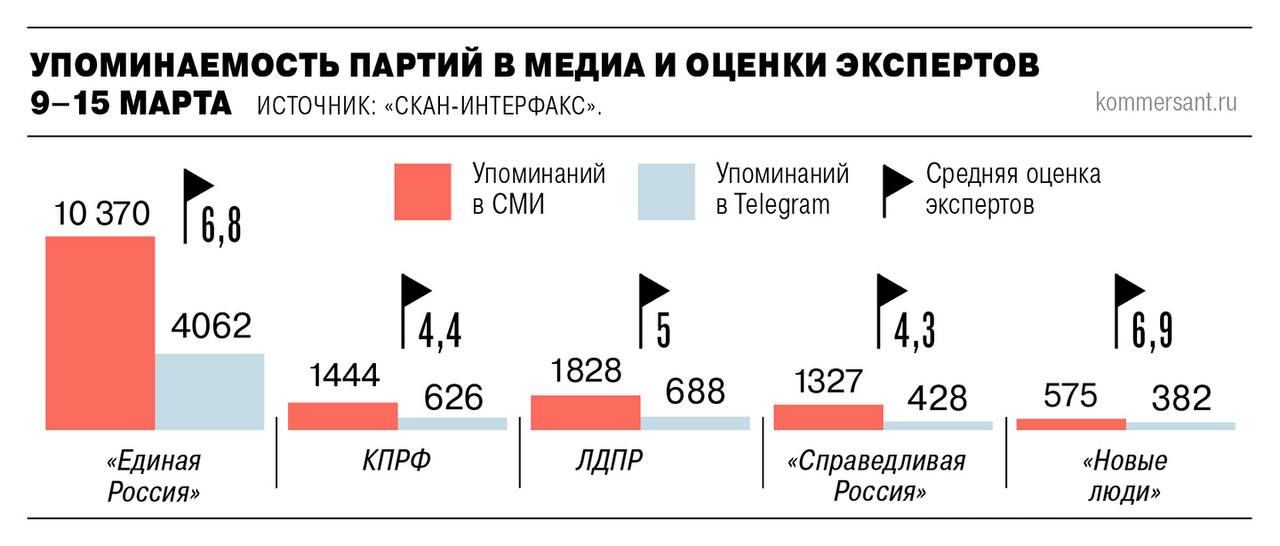 В преддверии этого события «Ъ» запускает новый проект, в рамках которого мы будем еженедельно рассказывать о том, чем занимались российские партии на прошедшей неделе, насколько внимательно за ними следили СМИ и соцмедиа и как все это, по мнению экспертов, скажется на электоральных перспективах будущих участников выборов.