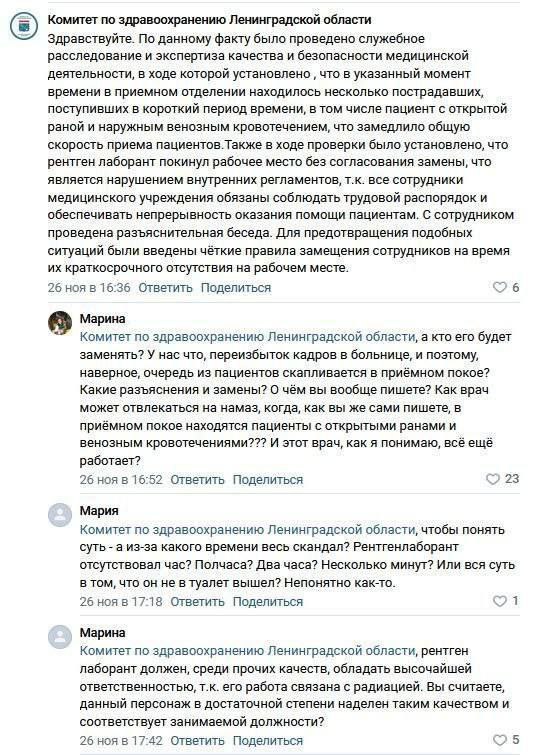 Комитет по здравоохранению, в свою очередь, заявил о том, что с сотрудниками больницы «проведена разъяснительная беседа». И всё.