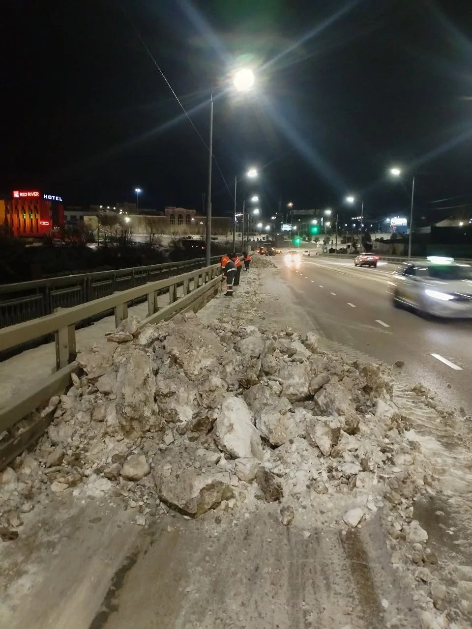 Пока город спит и отдыхает, ночная смена Комбината по благоустройству убирает снег на магистралях. Комплексы из снегопогрузчиков, грейдеров, самосвалов, тракторов-щеток снимают с дорог валы, накаты, наросты из снега и вывозят его на специализированные свалки.