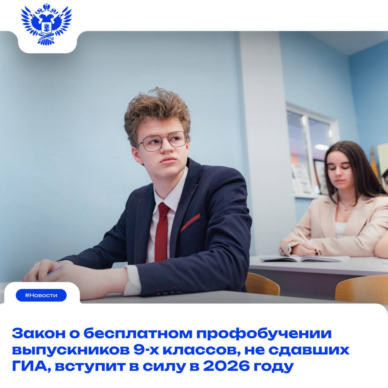 С 2026 года не сдавшие государственную итоговую аттестацию выпускники смогут бесплатно пройти курсы профессиональной подготовки и получить свидетельство установленного образца, подтверждающее наличие профессиональных компетенций, которое позволит им трудоустроиться.