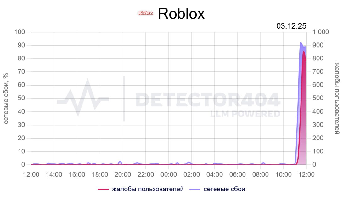 Пользователи сообщают о проблемах с доступом к Roblox. По данным detector404 и сбой. рф, первые сообщения о сбоях появились утром 3 декабря. Отмечается, что перебои затронули как приложение, так и сайт игровой платформы.