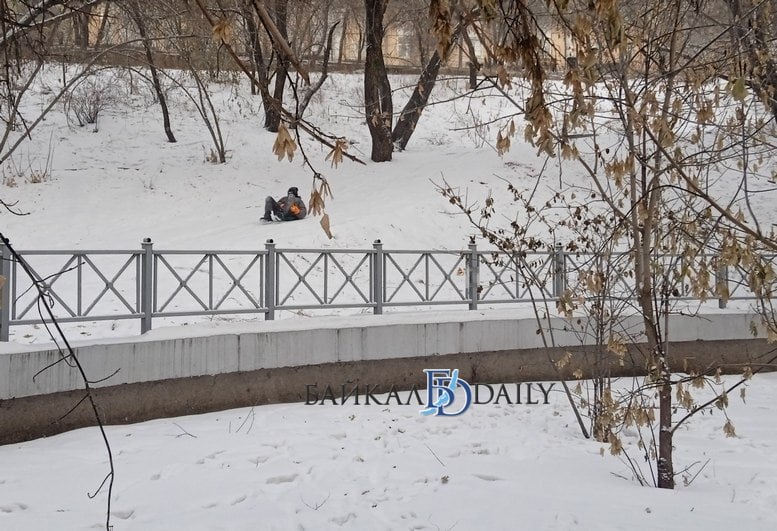 В улан-удэнском парке «Мемориал Победы» детей просят не кататься на склонах.