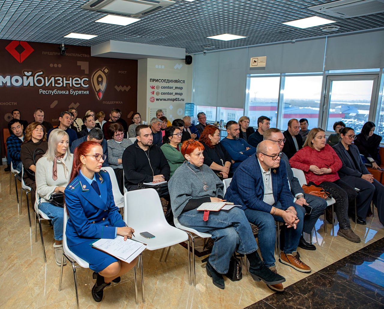 В мероприятии приняли участие Прокурор РБ Михаил Филичев, зампред Правительства республики Вячеслав Сухоруков, Уполномоченный по защите прав предпринимателей Чингис Матхеев и руководитель Минпромторга Бурятии Денис Гармаев. Участники встречи обсудили проблемные вопросы контрольно-надзорной деятельности в сфере бизнеса.