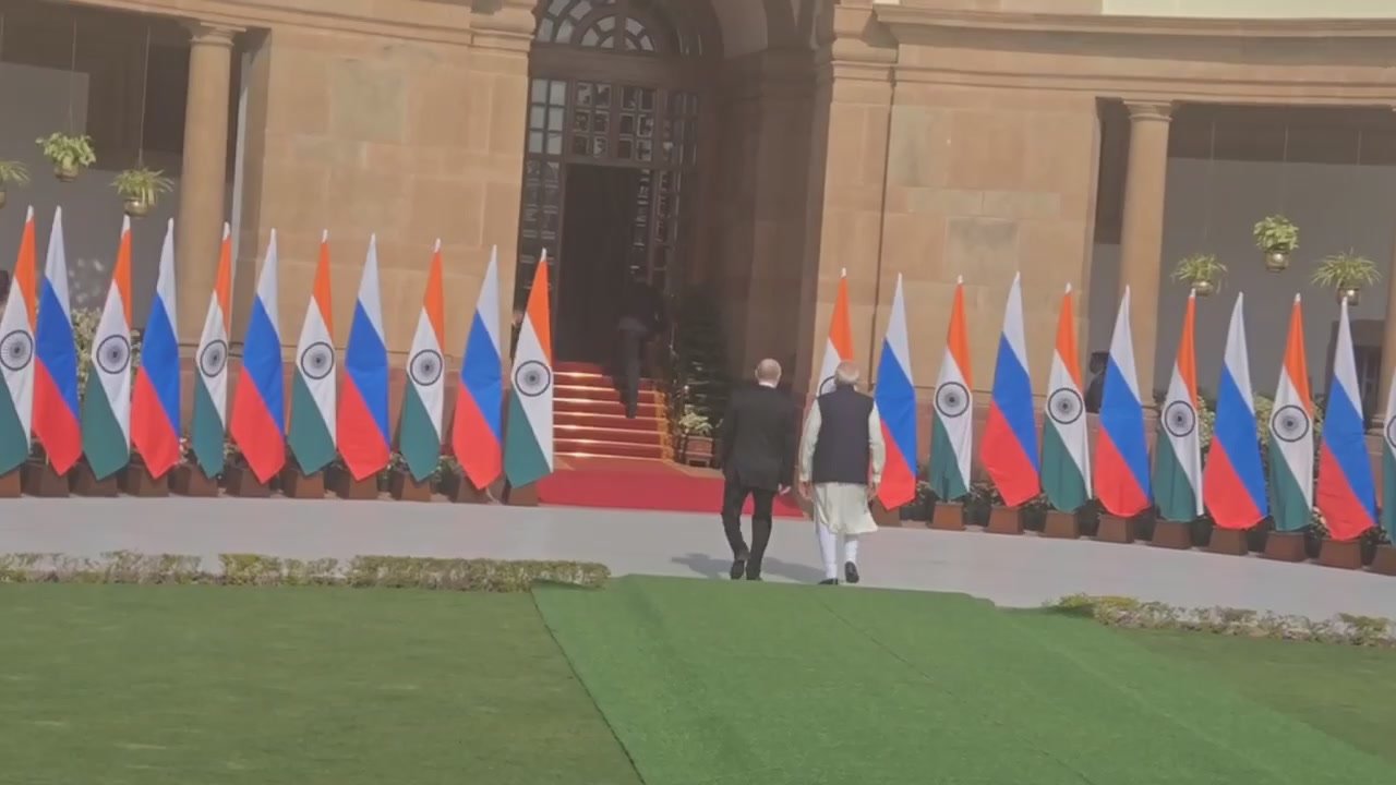 Началась встреча в резиденции премьер-министра Нарендры Моди. Тут пройдут все переговоры, будут сделаны заявления, передает специальный корреспондент «Ъ» Андрей Колесников.
