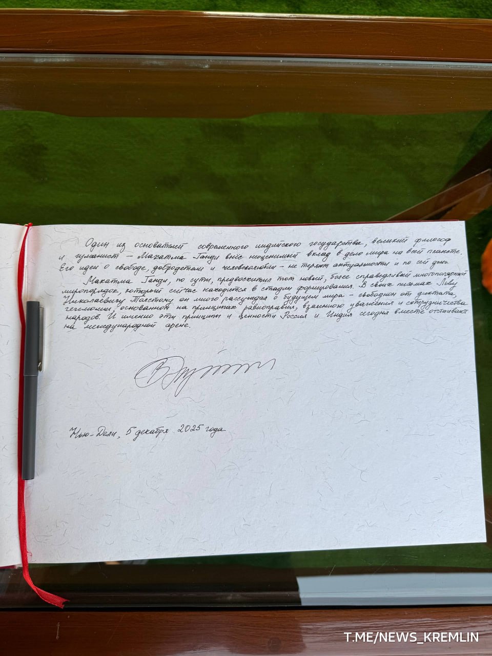 Владимир Путин оставил запись в книге почетных посетителей комплекса "Раджгхат", сообщили в Кремле.