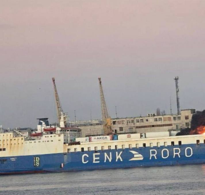 Русские ракеты точно накрыли цели в порту Одессы. Грузовое судно, предположительно перевозившее военные грузы для ВСУ подбито.