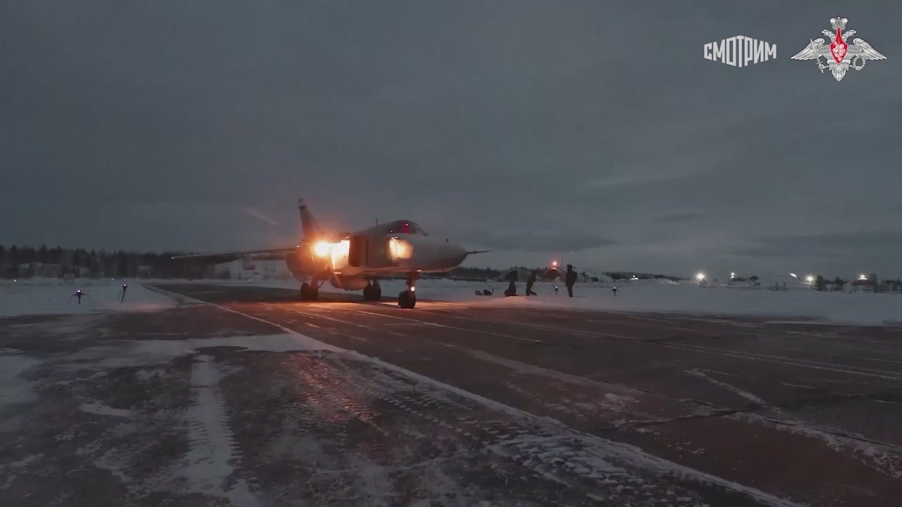 Летчики смешанного авиакорпуса Северного флота РФ отработали дозаправку бомбардировщиков Су-24М от самолета-танкера Ил-78 в воздухе. Кадры маневров показали Минобороны.