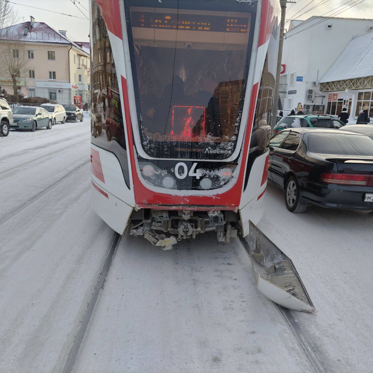 В Улан-Удэ мужчина на «Мерседесе» въехал в трамвай