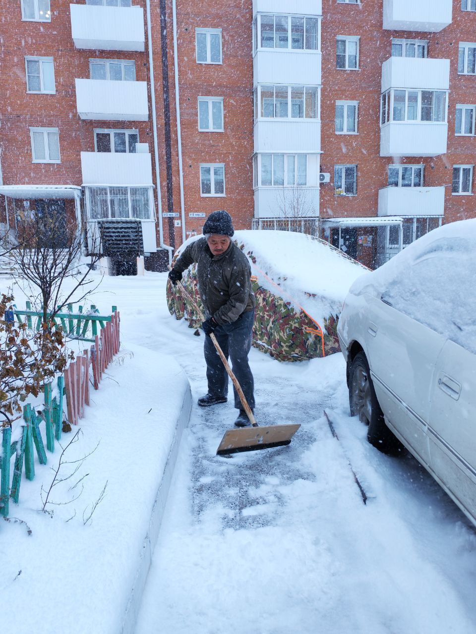 Константин Шайдуров, работающий в УК «Альтернатива» более 20 лет, убирал снег с 6 утра.