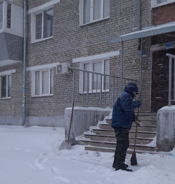 Управляющие компании и ТСЖ очищают придомовые территории: дворники убирают снег, подсыпают проходы и подъездные пути к домам.
