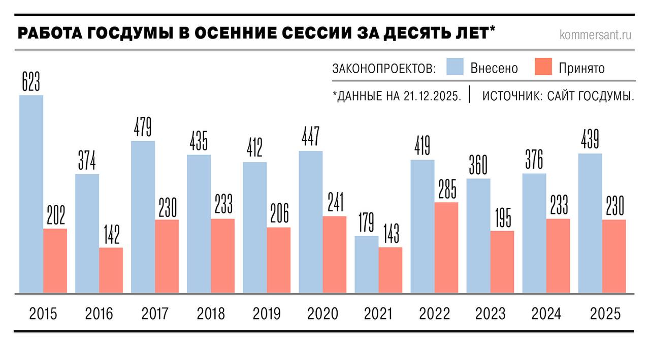 Осенняя сессия Госдумы, официальное закрытие которой состоится 23 декабря, прошла в целом в рамках традиционной повестки: депутаты работали над бюджетом, поддерживали участников СВО и боролись с врагами.