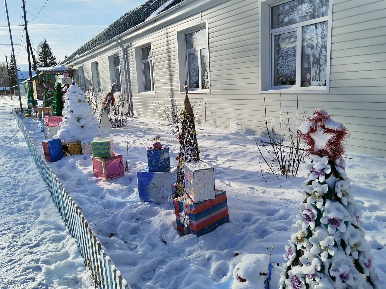 В преддверии Нового года они с энтузиазмом взялись за украшение школьной территории, создав настоящую аллею эко-ёлок. Из коробок, снега, пластика и металла ребята смастерили свои арт-объекты.