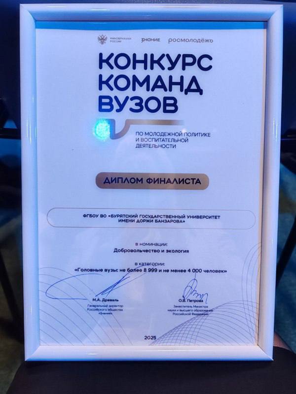 БГУ им. Д.Банзарова подтвердил статус одного из лидеров в области молодёжной политики, став финалистом всероссийского конкурса команд вузов. Всего на конкурс поступило 866 заявок из 82 субъектов России.