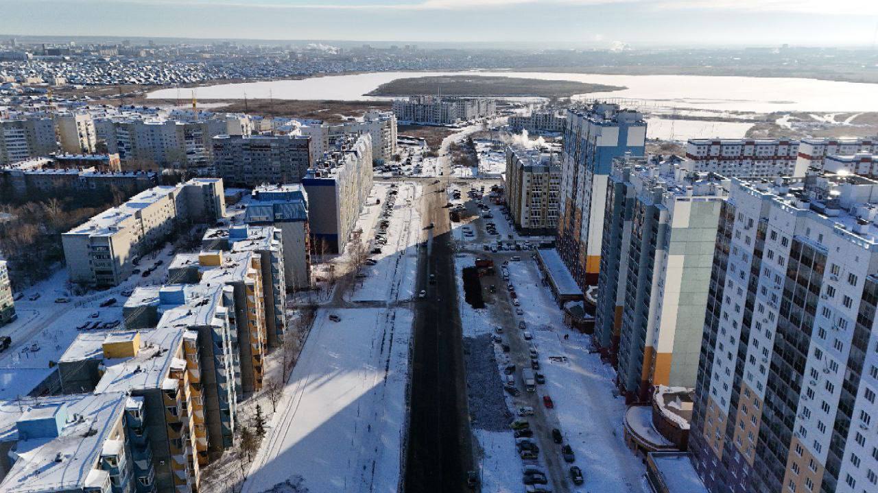 В новом развивающимся районе введено два участка проспекта. Не просто асфальтированная дорога, но и сети, тротуары, светофоры.