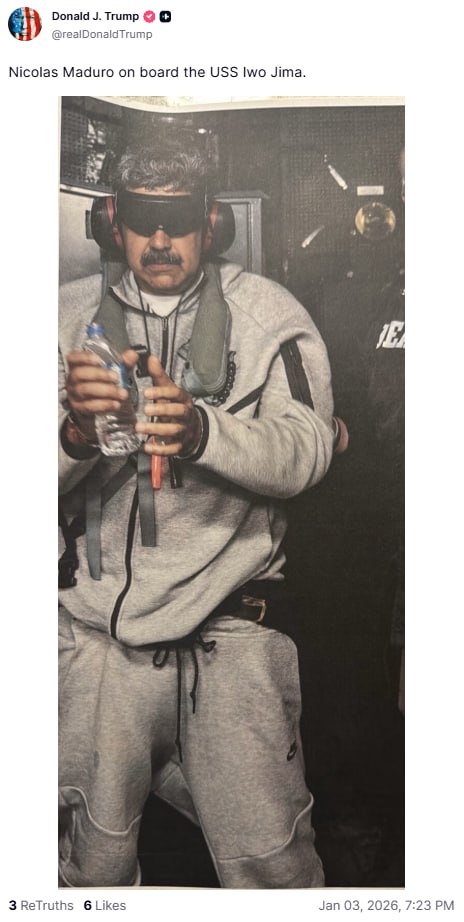 Трамп показал фото захваченного Мадуро на корабле ВМС США.